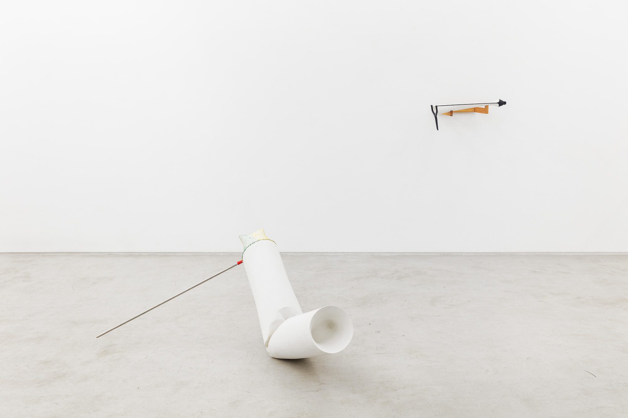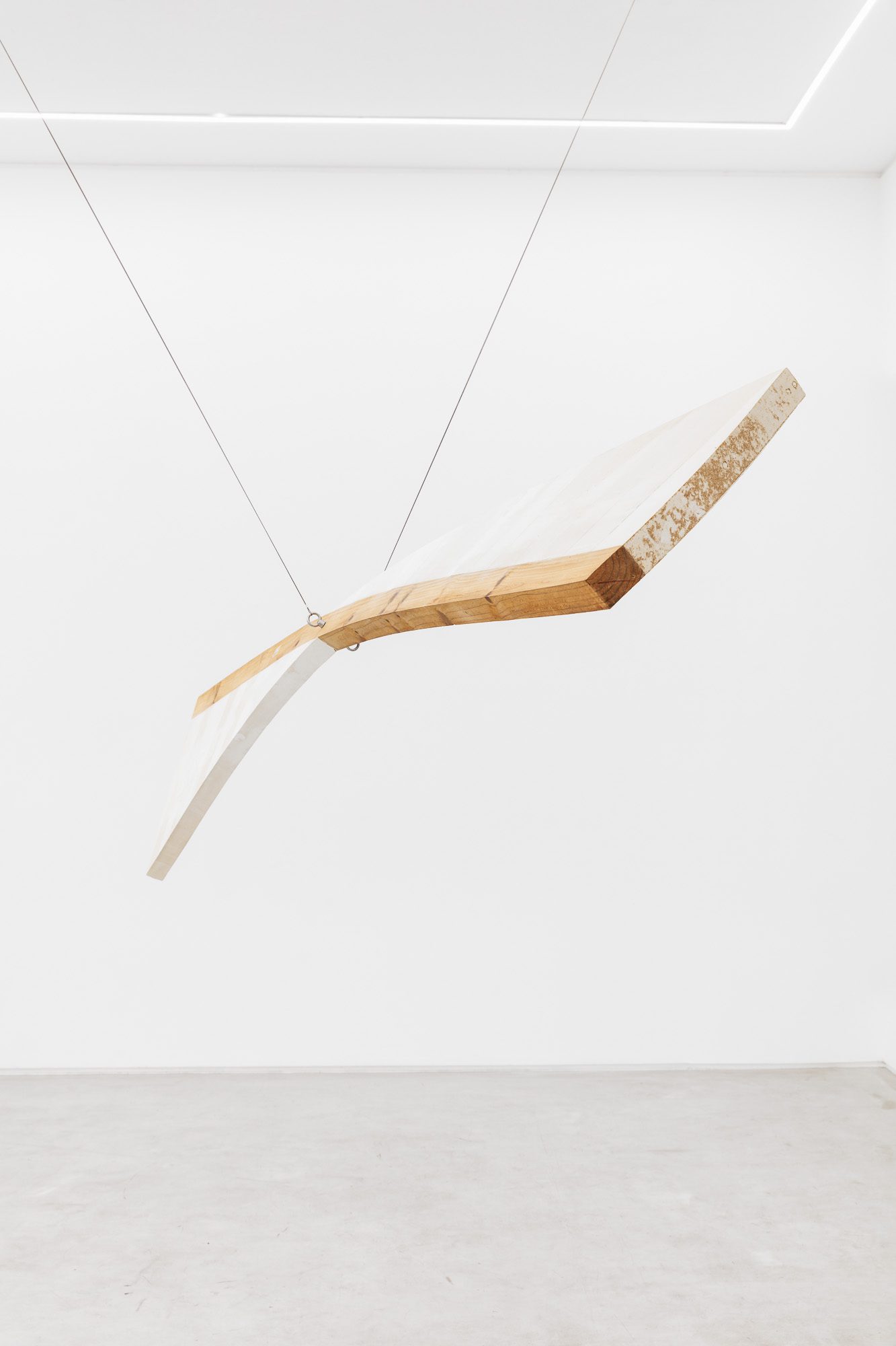 Upon entering the gallery, works such as Wooden Beam Plastic Movement, Net, and Sling introduce a fundamental concern: volume is not conceived as a given form, but as the trace of a movement. The volume of a static body becomes the visual representation of a transformation, or the residue of a performative act. Gaido imagines an abstract, two-dimensional surface without thickness that moves through space and, in doing so, captures a portion of it. This fragment of space solidifies into mass, not as a body in space, but as an effect on space. Plaster, a structural and transitory material, is deliberately chosen as a medium that anticipates form rather than fixes it.