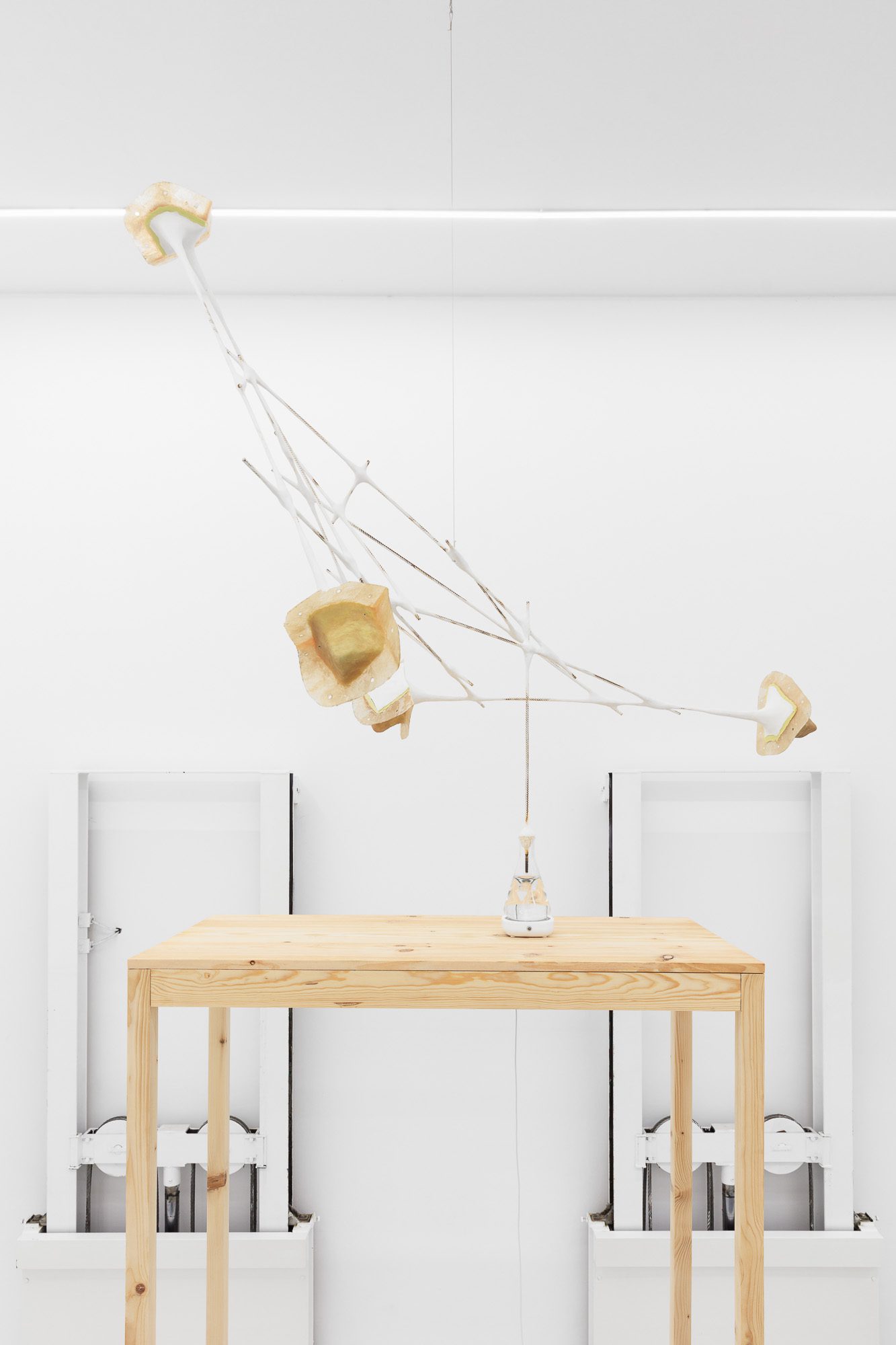 The invented term unfinishablinging refers to a principle that runs through all the works in the exhibition: the end of something that, by definition, cannot be finished. It embodies the paradox of a gerund that indefinitely postpones completion, extending a process that is inherently unfinishable. The forms, objects, and situations that emerge from this process appear complete, yet only superficially so. Their dimensions, material qualities, and spatial presence may seem finite, but the process that generates them is not. It remains ongoing, and the gerund functions as a temporal extension of this condition, keeping each work in a state of latent performativity, an endless game in which only pauses are possible.
