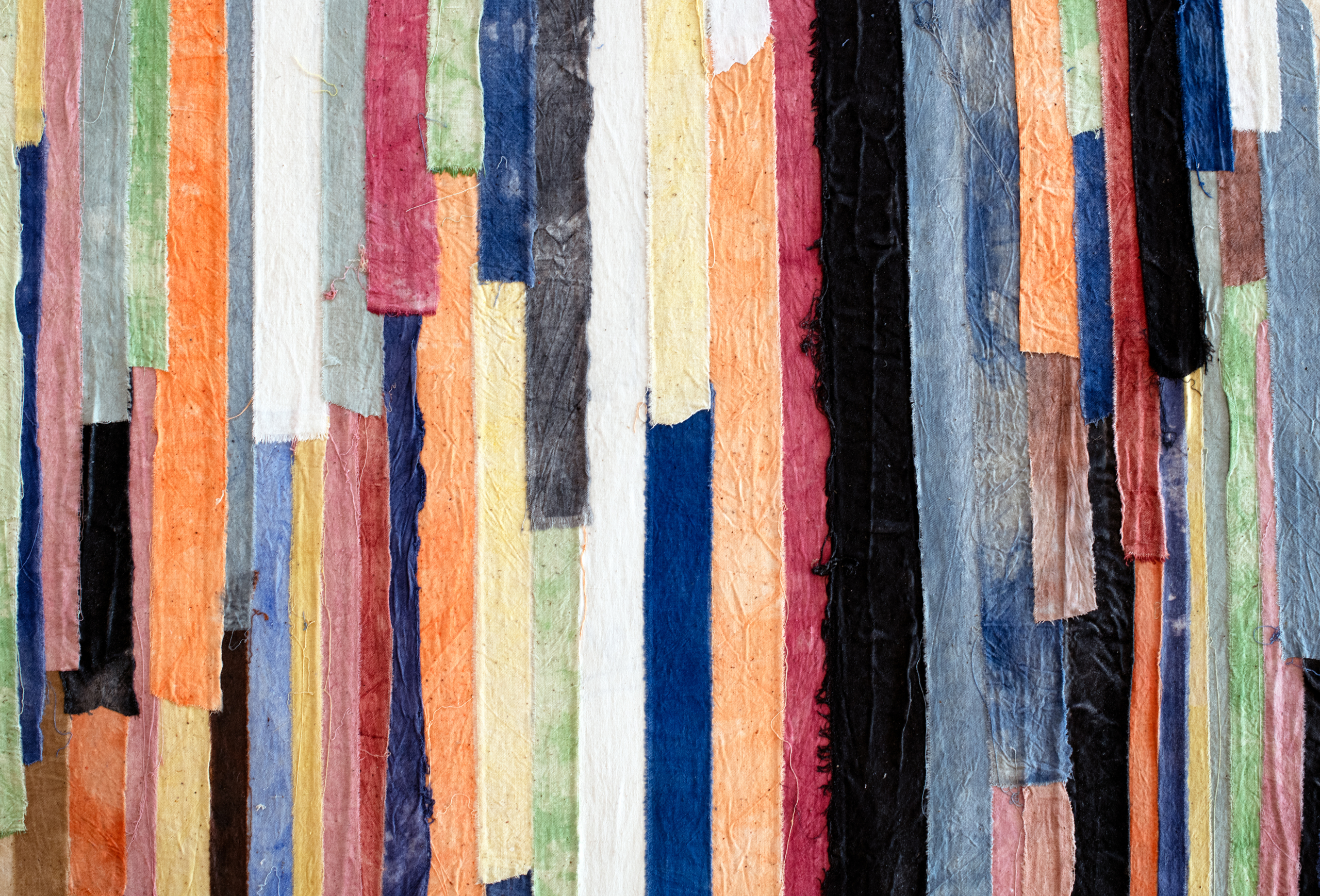 The exhibition unveils the results of the artist’s research conducted in Benin in 2024, during her second artistic residency at the Fondation Zinsou. Deeply engaged with Beninese culture and its spiritual traditions, Pauline Guerrier immersed herself in the rituals and figures of Vodoun, focusing in particular on the Zangbeto, guardians of the night, and the Egungun, ancestors who return among the living. These mystical figures, protectors of the community and mediators between the visible and the invisible, inform a plastic and symbolic reflection at the core of her practice. Through installations made of fabrics dyed by the artist, cut, recomposed, and rematerialized, Pauline Guerrier gives rise to vibrant, colorful silhouettes that function as contemporary reinterpretations of these spiritual guardians.