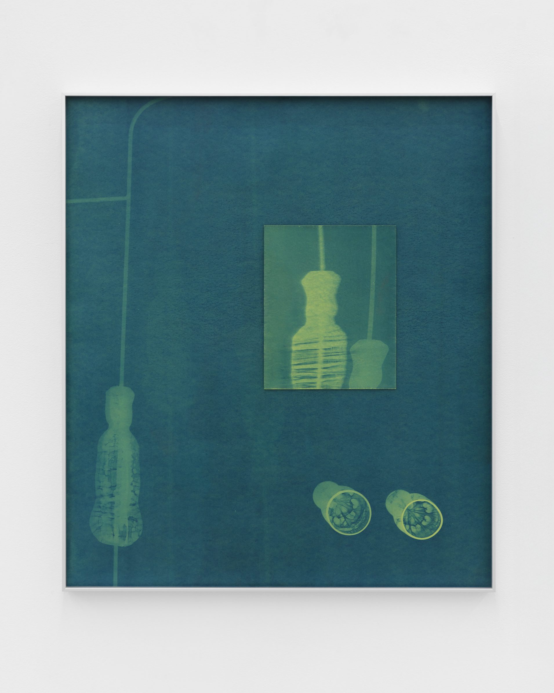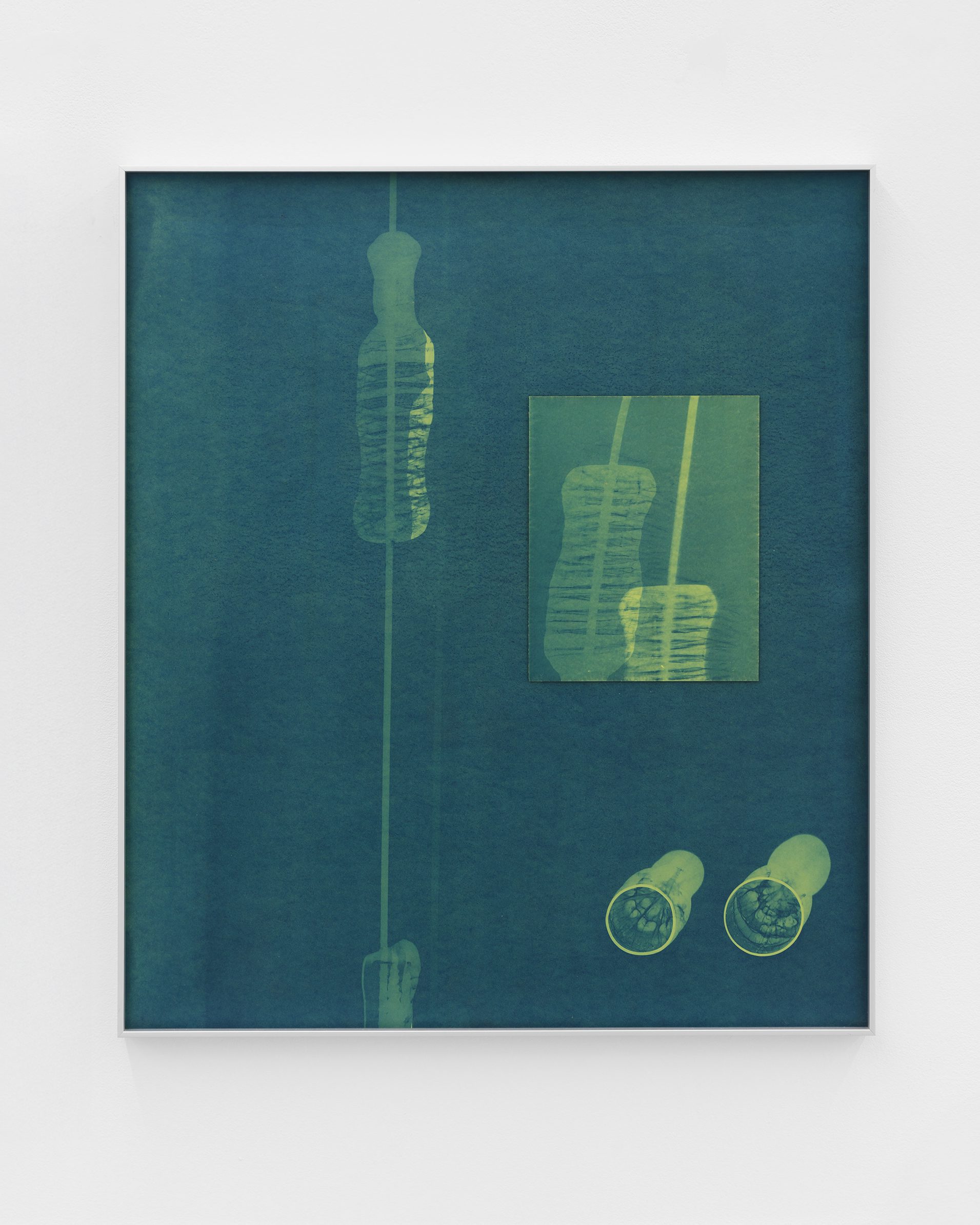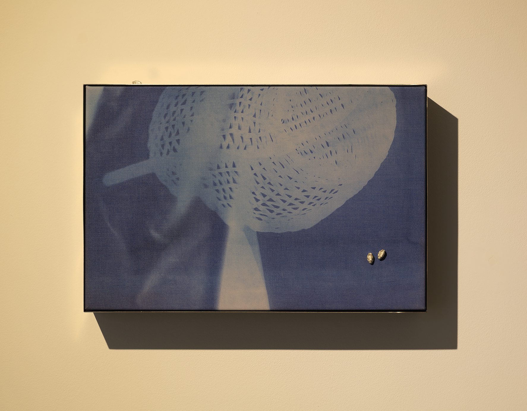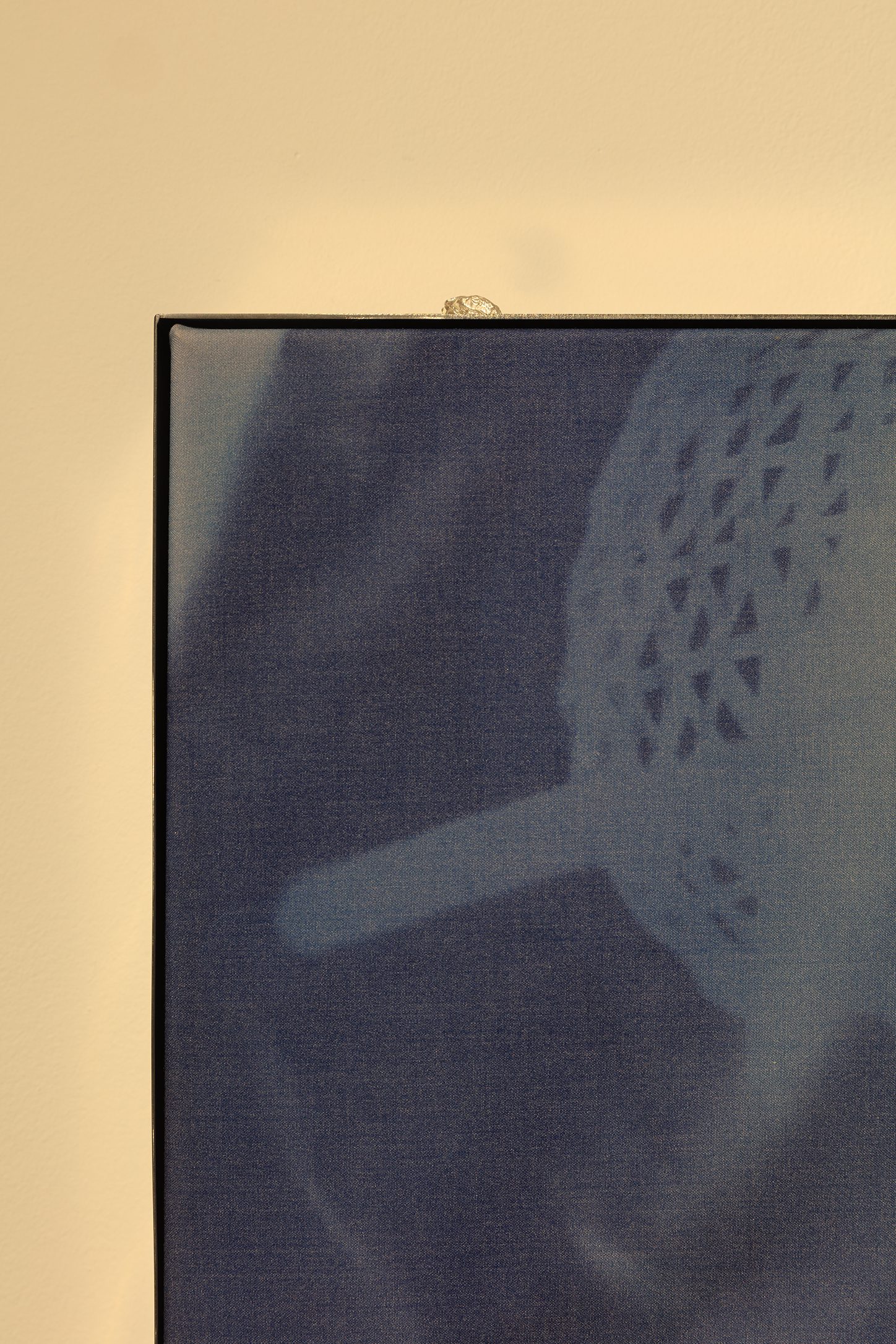 Aço inoxidável, Fotograma impresso em cianótipo em algodão, Passas prateadas