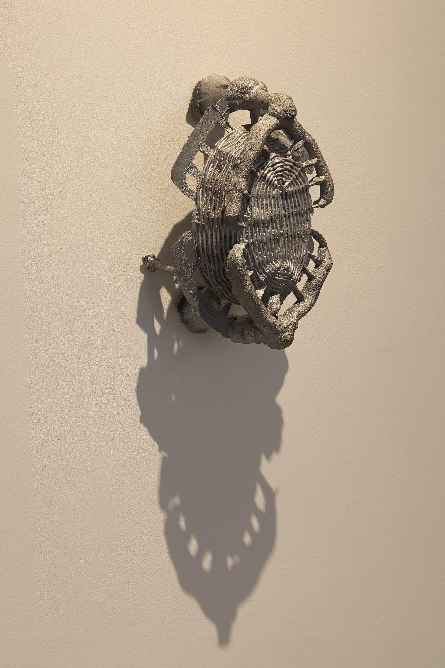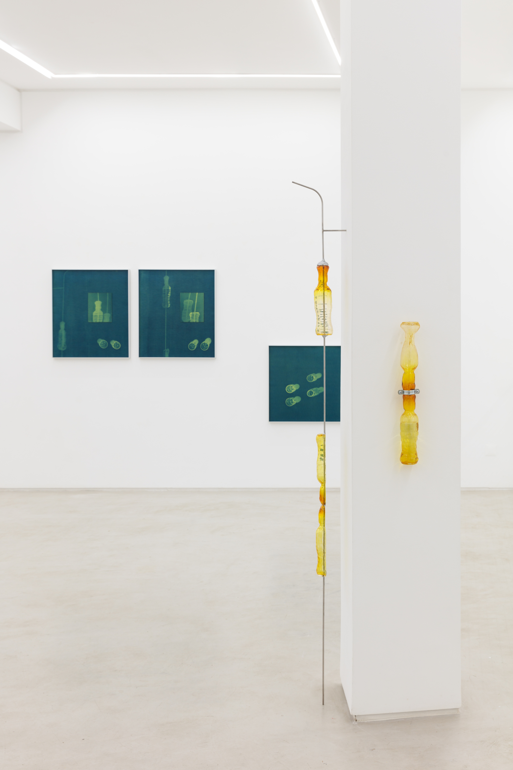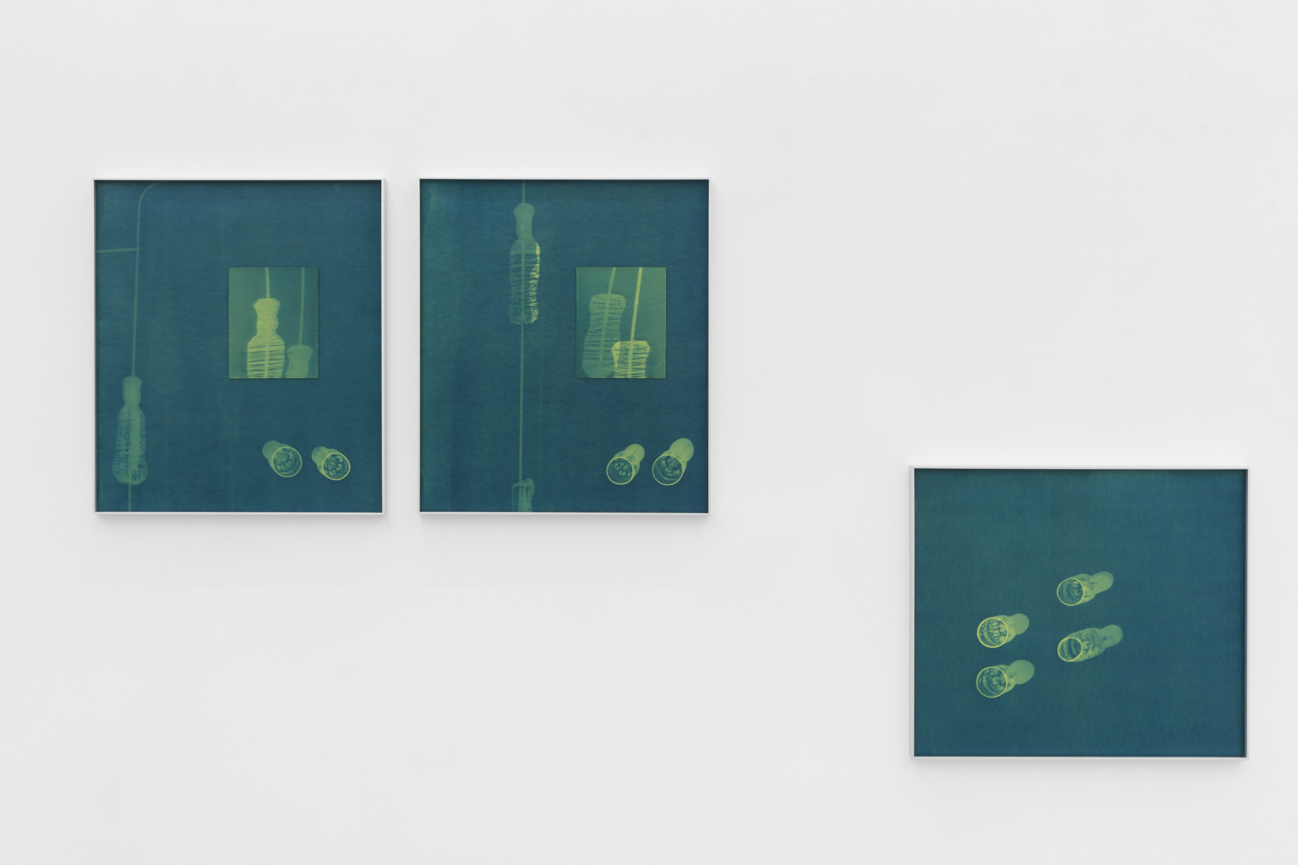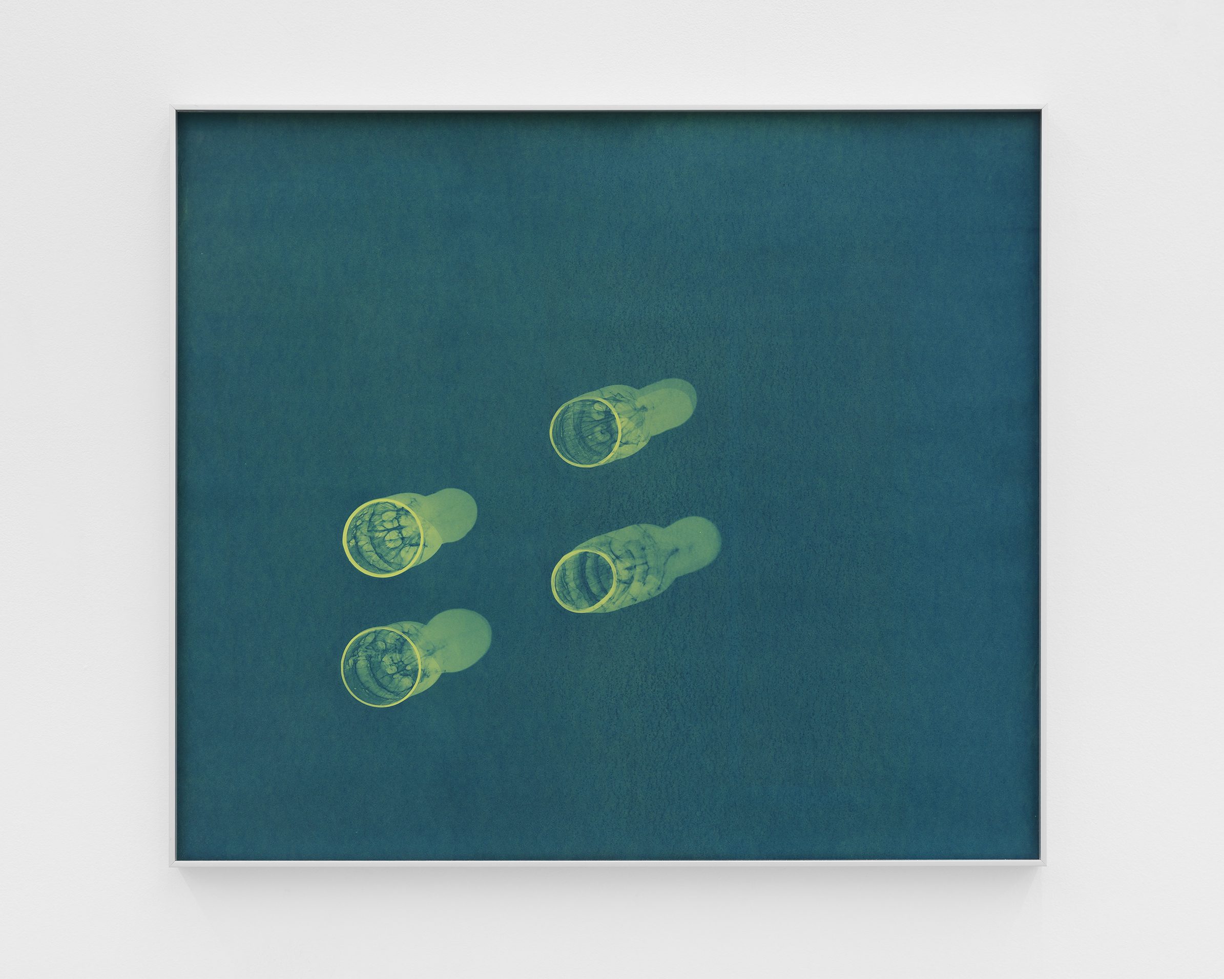 Aço inoxidável, Fotograma impresso em cianótipo em algodão, Passas prateadas