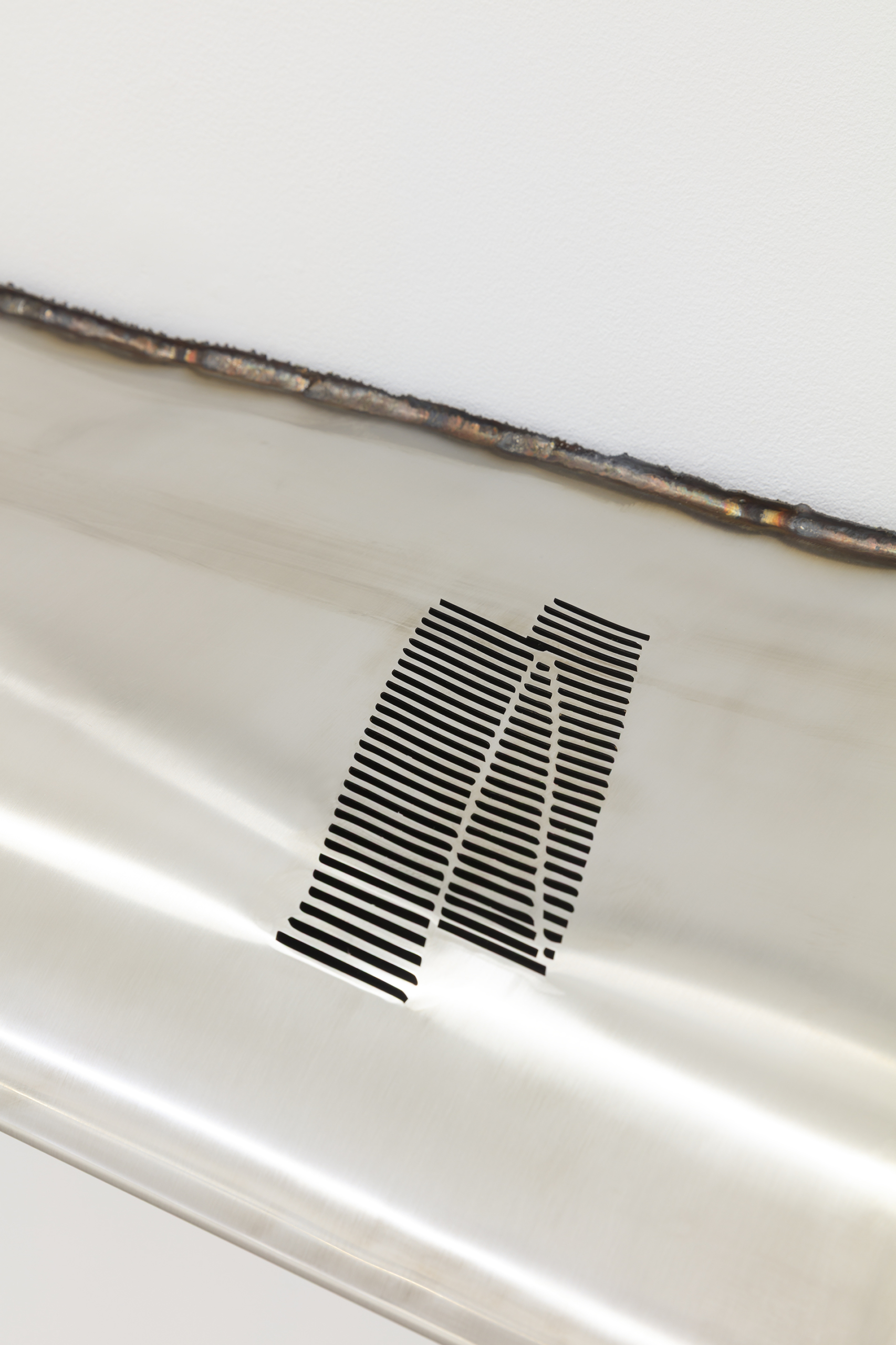 Resina epóxi, pigmento, aço inoxidável cortado a laser