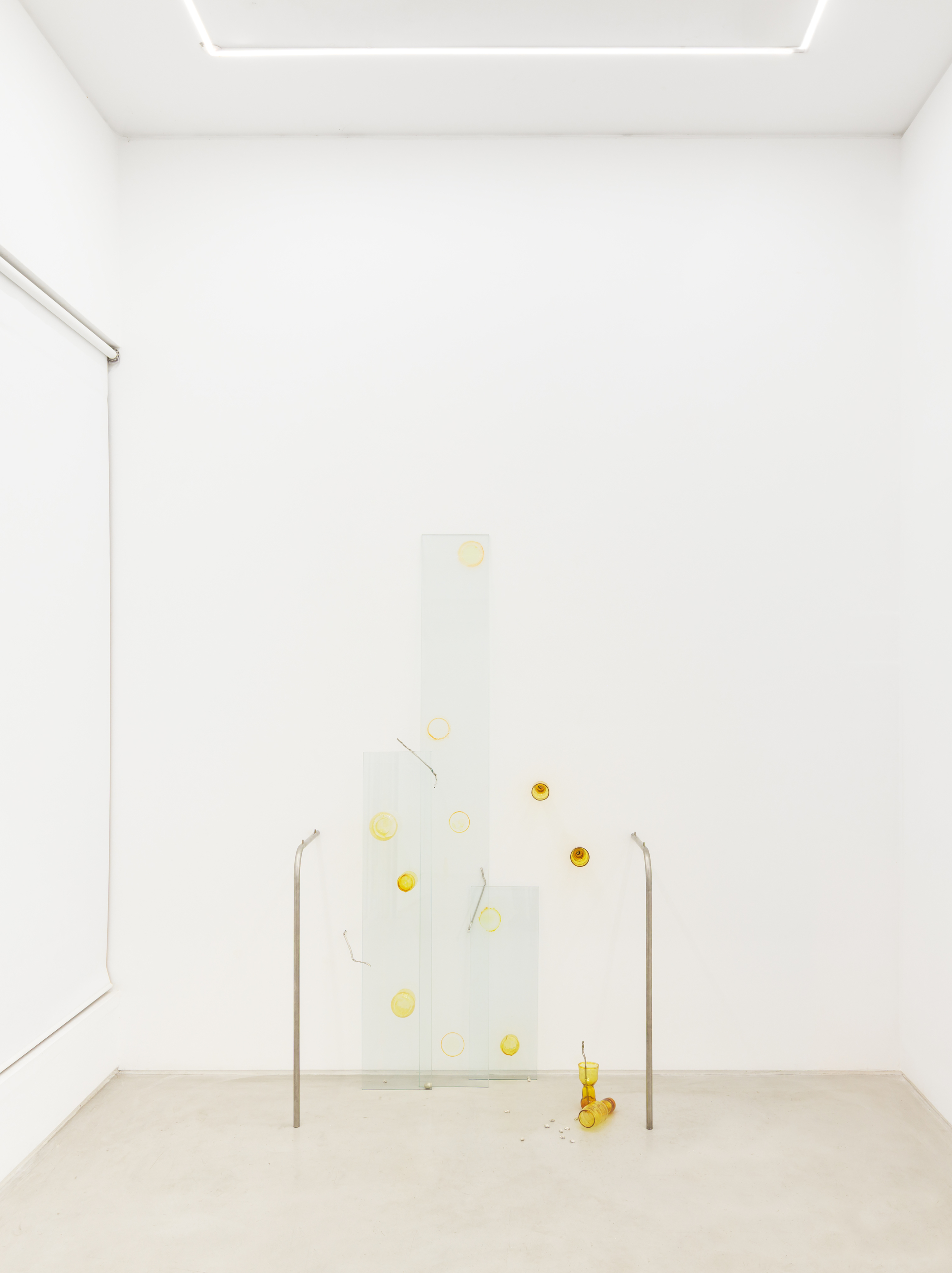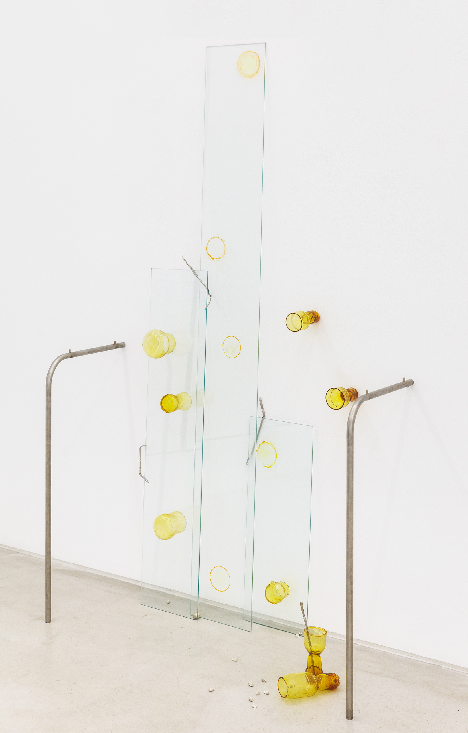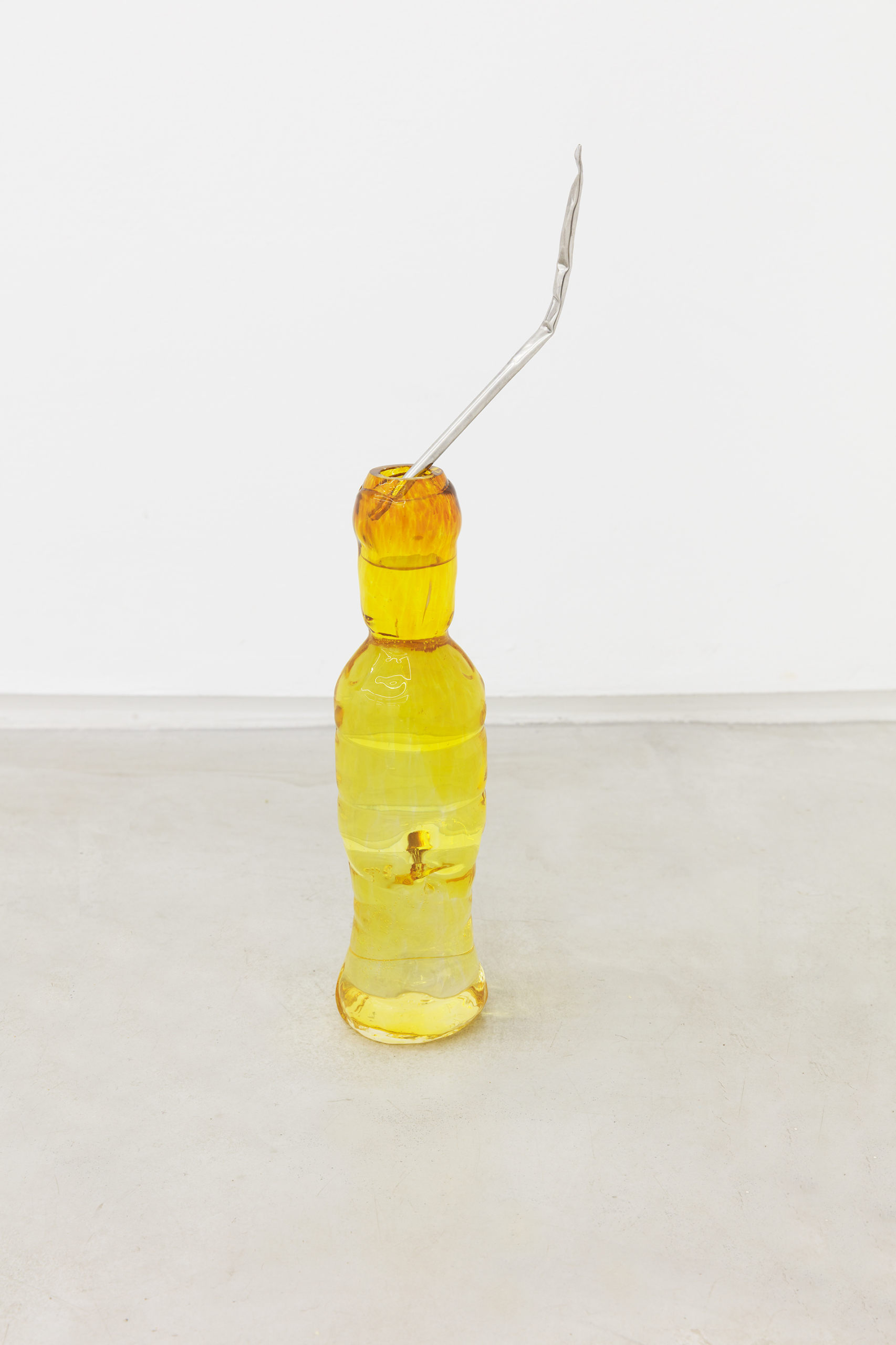 Vidro soprado, Prato de vidro, Canudo de aço, Uva passa prateada, Uva prateada, Tinta alcoólica, Aço inoxidável