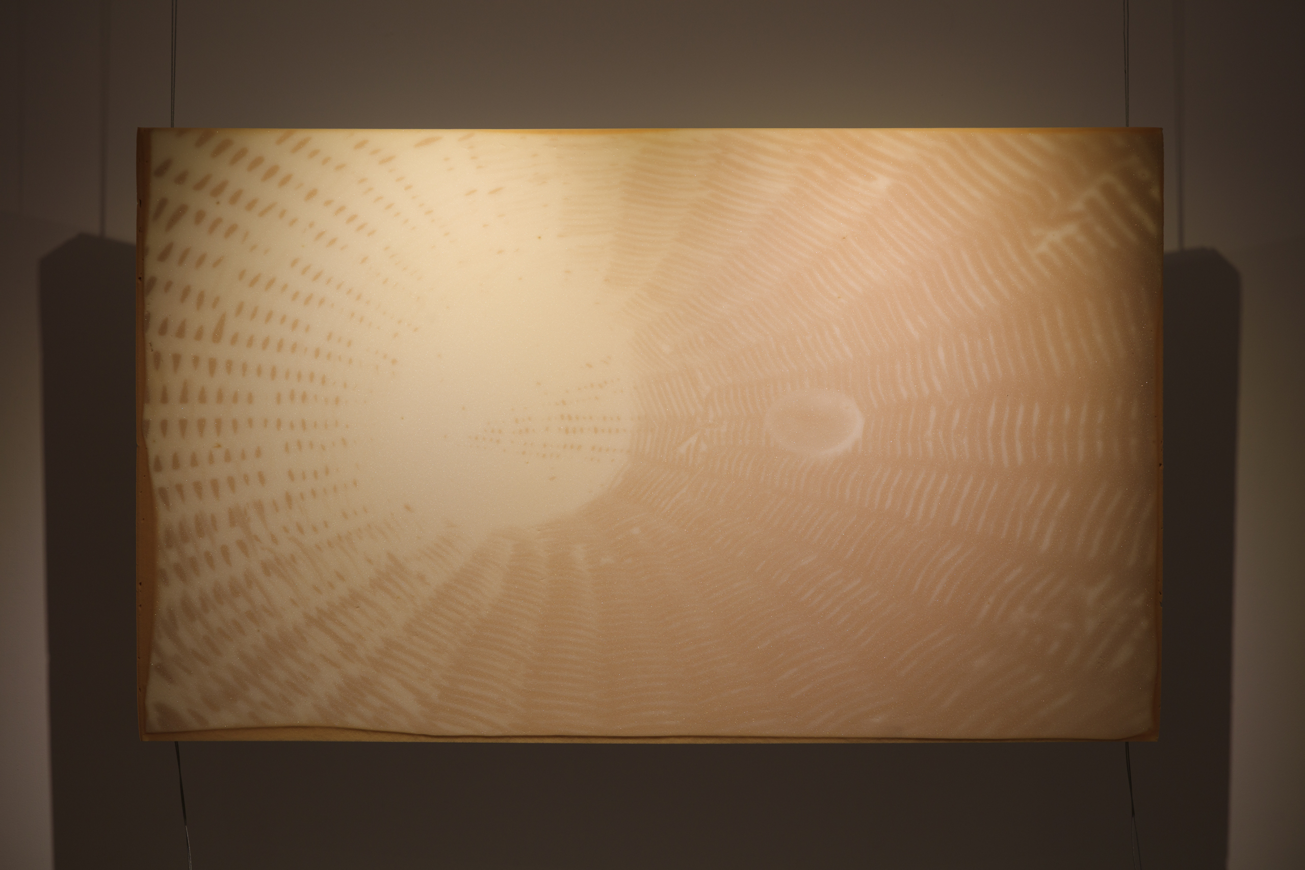 Fire-printed photogram, Wood coated aluminium frame, museum glass